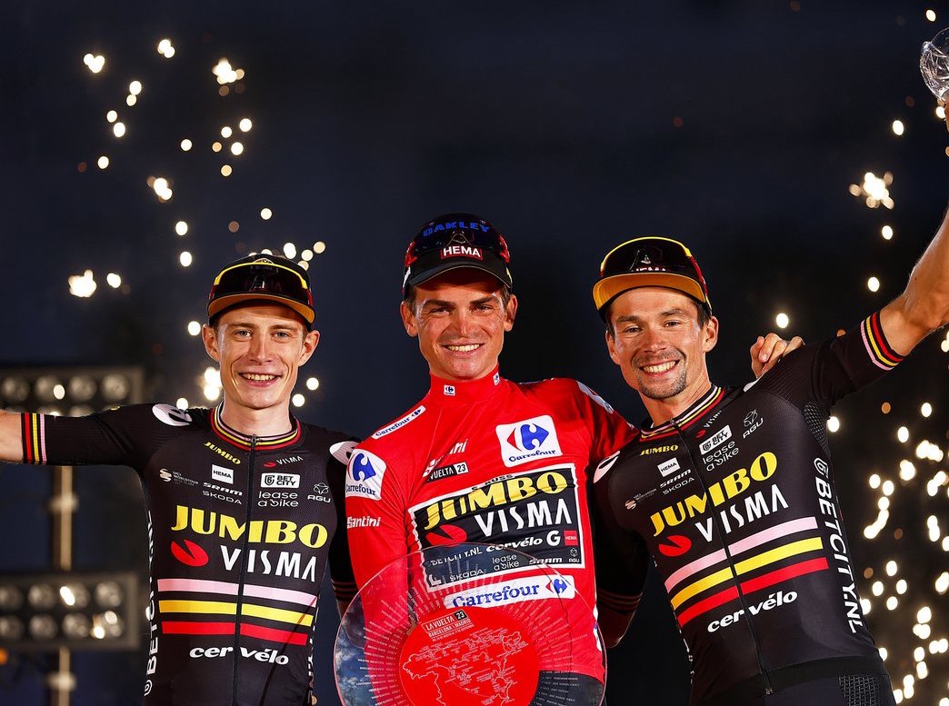 Comme si cela ne suffisait pas, la Jumbo Visma réussit un autre triplé en plaçant ses trois hommes sur le podium cette Vuelta 2023.